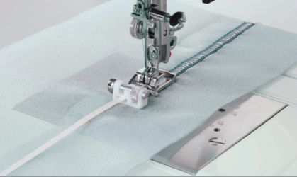 Zierbänder und Pailletten lassen sich mit dem Pailettenfuss spielend leicht annähen. Einfach auf den Stoff legen und mit Zickzackstich annähen. Die vordere Öffnung des Fusses dient als regulierbare Führung für die Bänder oder Pailletten.
